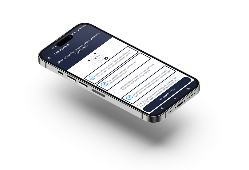 De leerapp zorgt dat de cursist de kennis op een uniforme herkenbare manier aangeboden krijgt en er op elk moment en elke locatie geleerd kan worden.
